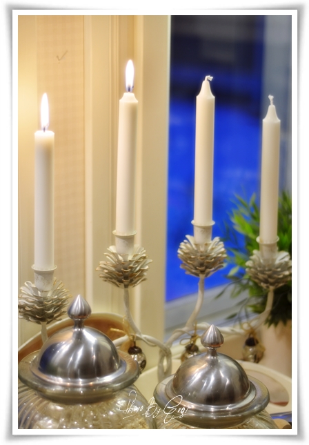... på marken och träden är så fina i sin vita skrud. Överallt i fönstren lyser stjärnor och ljusstakar upp och genast ser det så mycket mera hembonat och trevligt ut ;O) |